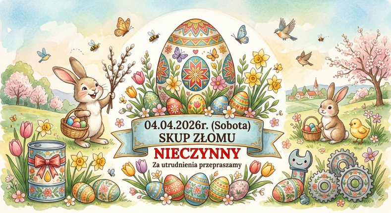 04.04.2026r. (Sobota) Skup Złomu NIECZYNNY Za utrudnienia przepraszamy.