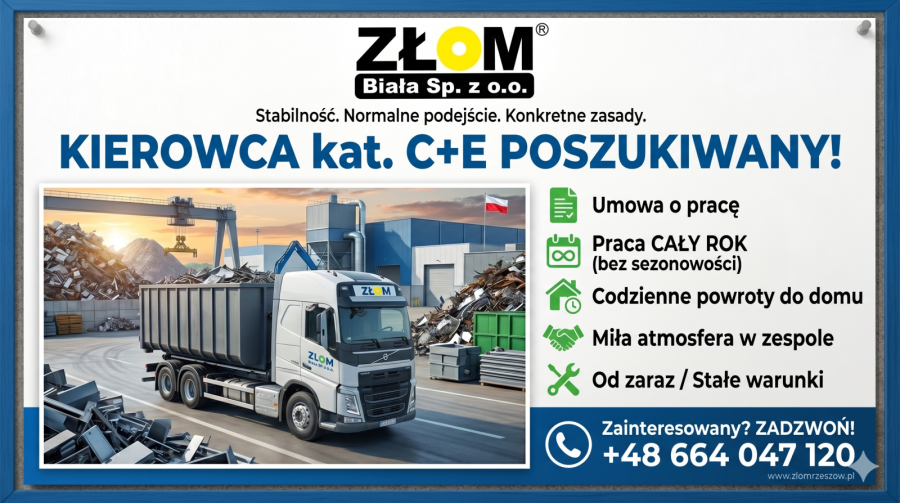 Stabilna praca dla Kierowcy kat. C+E ? Dołącz do zespołu Złom-Biała!
